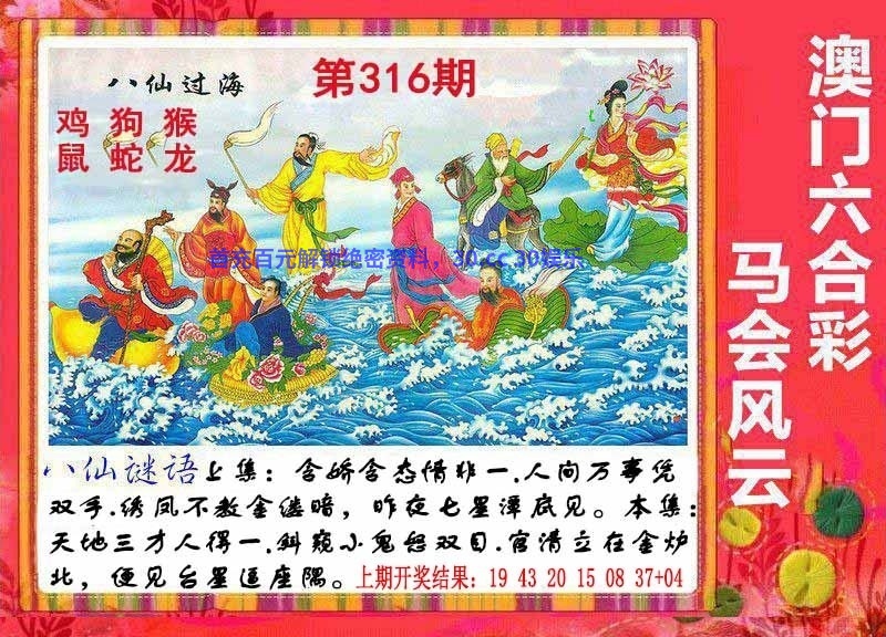 | 319期:八仙过海:开奖结果(發00) 【正在更新】 解:正在更新 生肖:正在更新 |